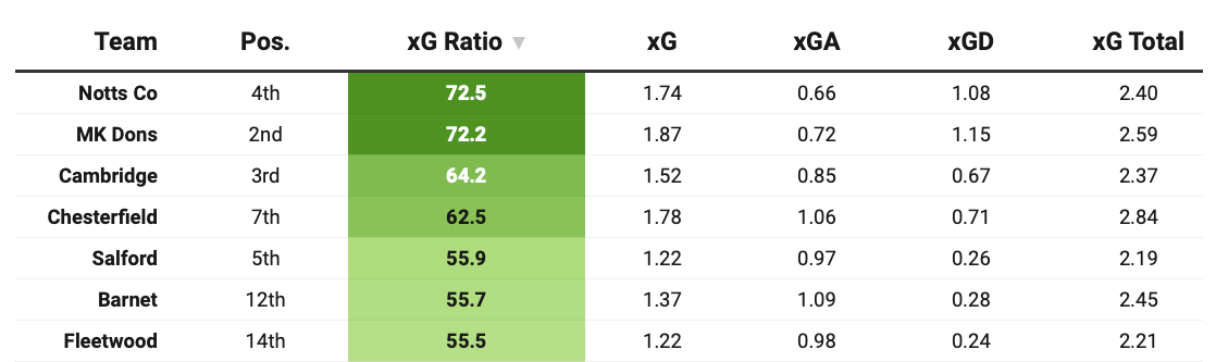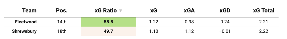 Interestingly, their underlying numbers tell a slightly different story. Compared to Fleetwood, who have a similar xG Total over ten games, Shrewsbury’s results appear more volatile.