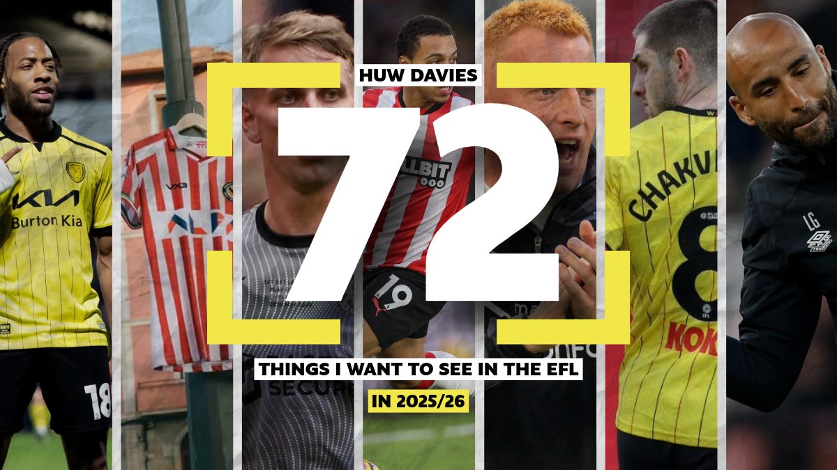 From sock sponsors to Steel City drama, centre-backs winning Player of the Month to 50-goal-contribution seasons, Huw Davies lays out 72 gloriously specific, occasionally serious, and always heartfelt hopes for the 2025/26 EFL season. This is a love letter to the characters and the chaos of the English Football League.