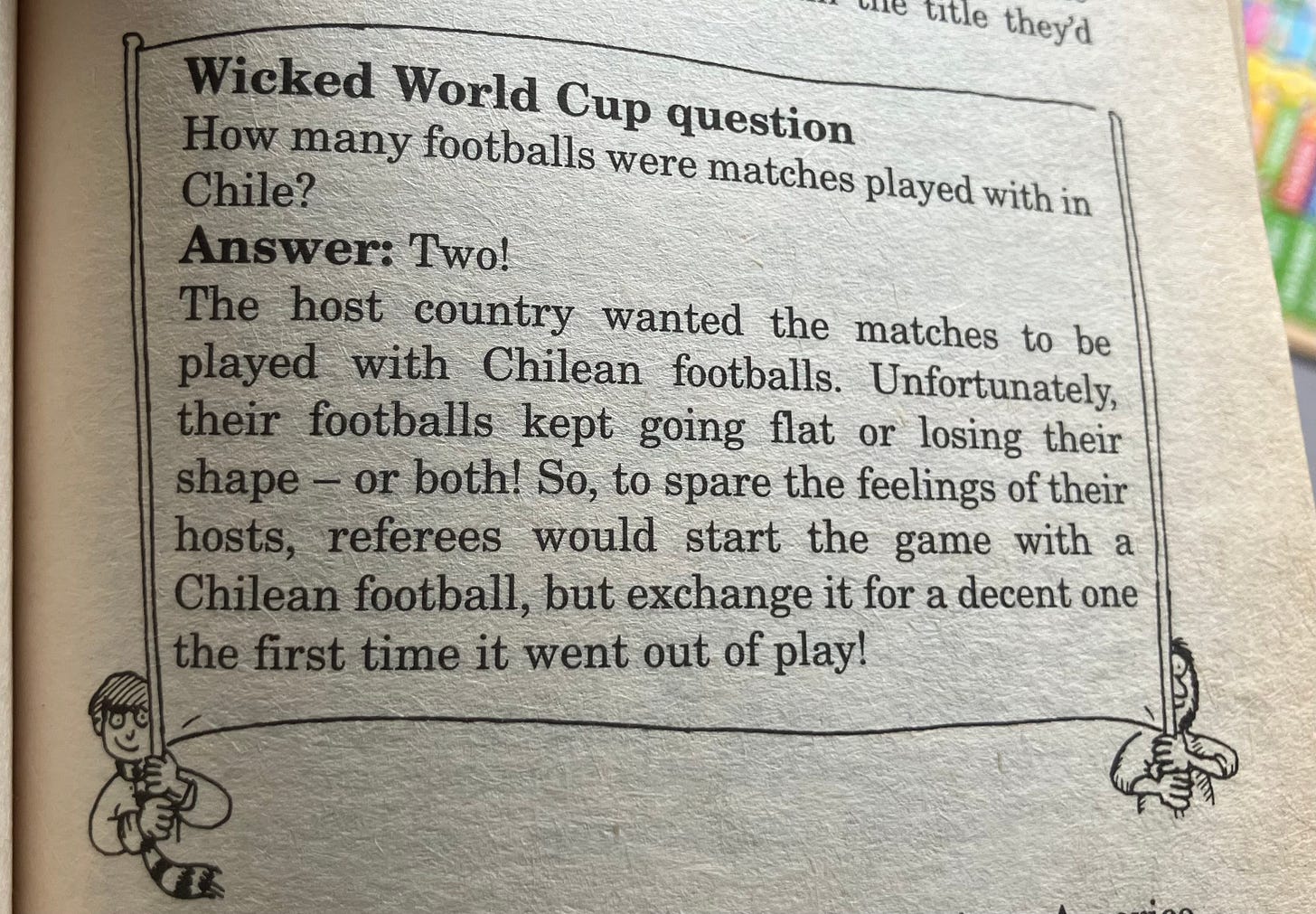 67) Port Vale’s 150th anniversary kit. I just can’t wait to see it in the flesh/fabric, because you see such shirts advertised as celebration specials but often they aren’t worn, and certainly not for a full season. Can Vale kick off each match with a leather sewn-up ball as well? Then change it for a real one as soon as it goes out of play, as they did at the 1962 World Cup (source below).