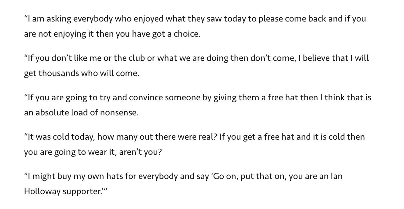 54) Ian Holloway following through on a great start at Swindon. He hasn’t always ‘got it’ since his arrival, dismissing the club’s fun rivalry with Gillingham (see above) and claiming that the 500 fans in orange hats protesting against Clem Morfuni’s ownership were just wearing them because it was cold, but you can’t argue with the results: from the start of December onwards, they were a top-three side for points per game.