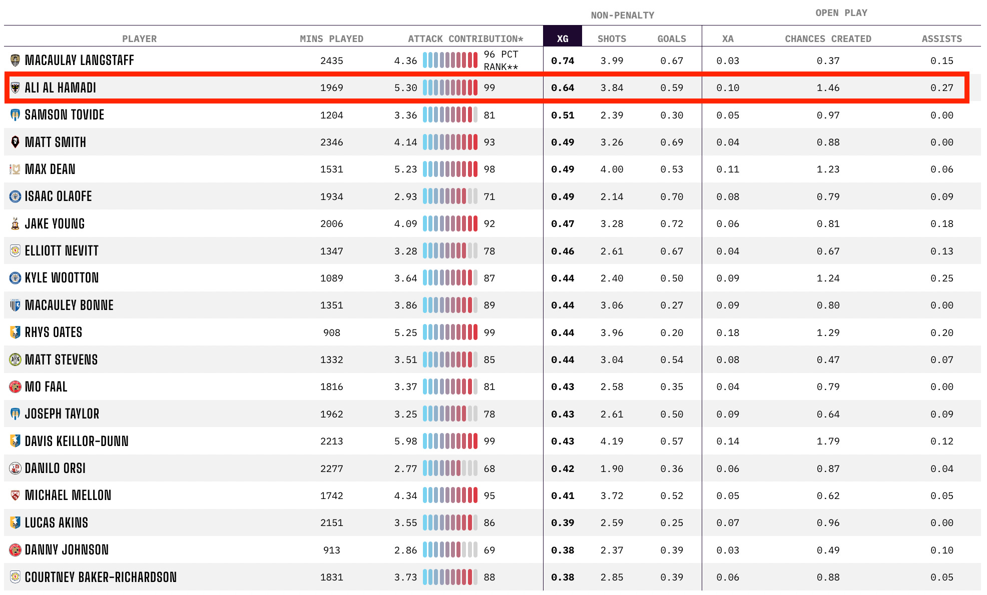 His movement, speed and relentlessness has made him impossible for League Two defenders to handle. Al-Hamadi’s finishing is not always clinical, and that does not matter. The perfect striker does not exist in the Championship. Hell, it may not even exist in the Premier League anymore — and here’s a good podcast episode on the topic with a handsome host.