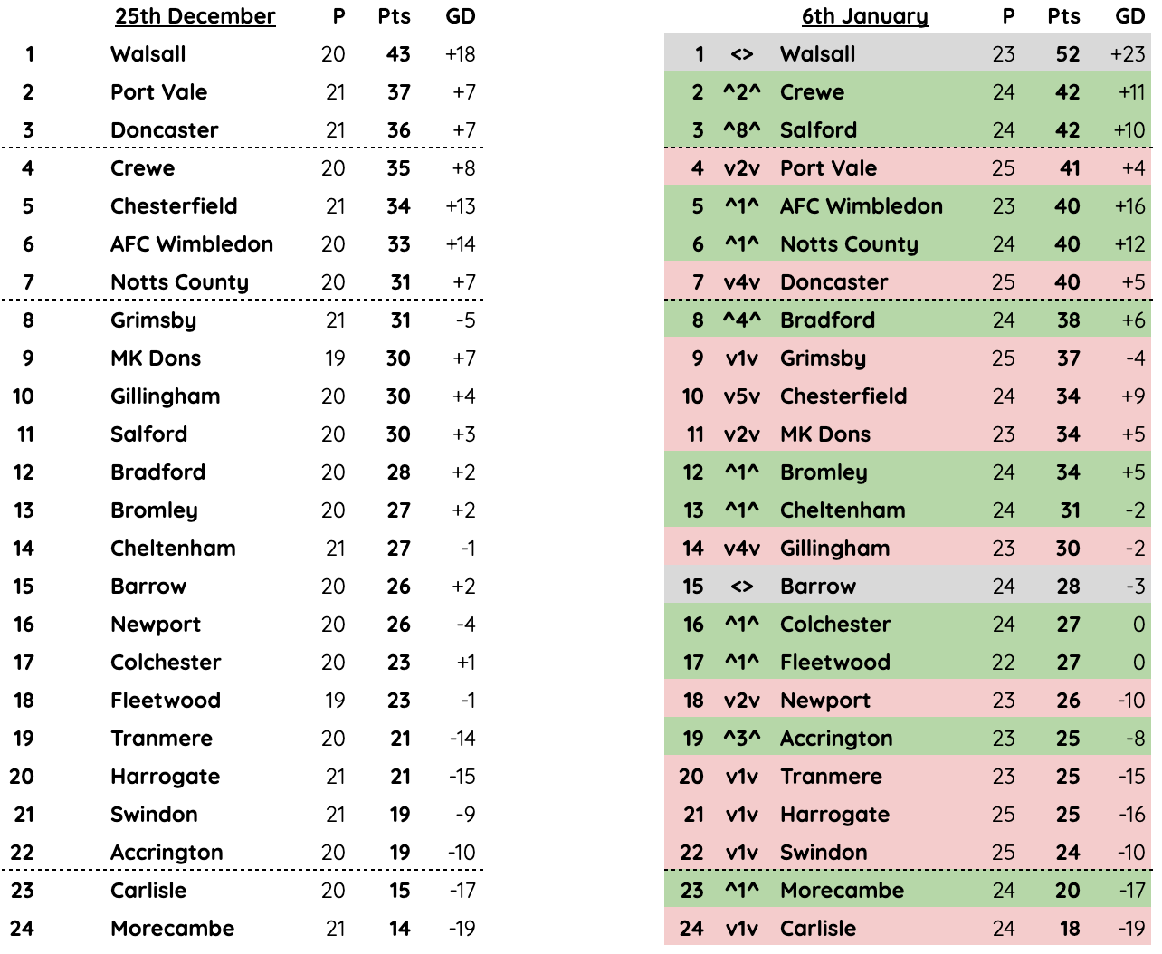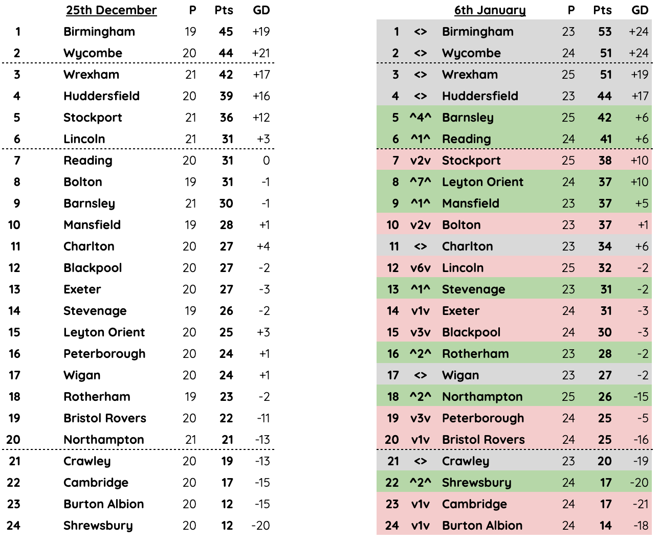 🎭 Max Pleasure v Max Pain — The following teams took maximum points over the festive period: Barnsley (P4 W4), Leyton Orient (P4 W4), Salford (P4 W4) and Walsall (P3 W3). Whilst Cambridge, Luton, Chesterfield, Gillingham and Newport ended up without a single point, although the Hatters have a game tonight.