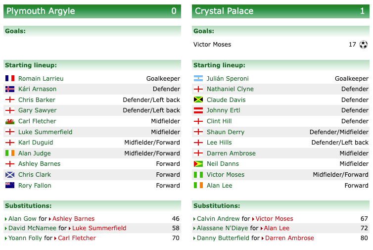 *Special mention for Victor Moses, who scored his first goal in the Championship since 16th January 2010 with a neat chest and thunder-crack finish. The team sheet that day?