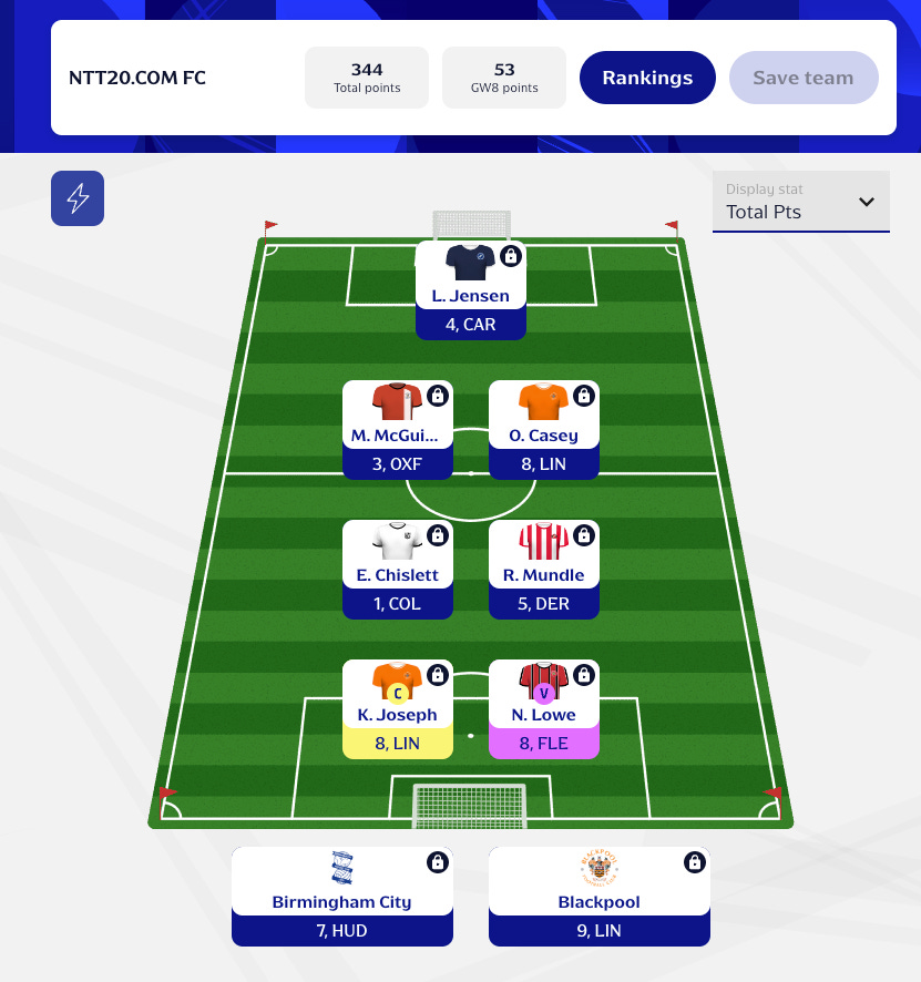 Go head-to-head against team NTT20 in our EFL Fantasy Football league