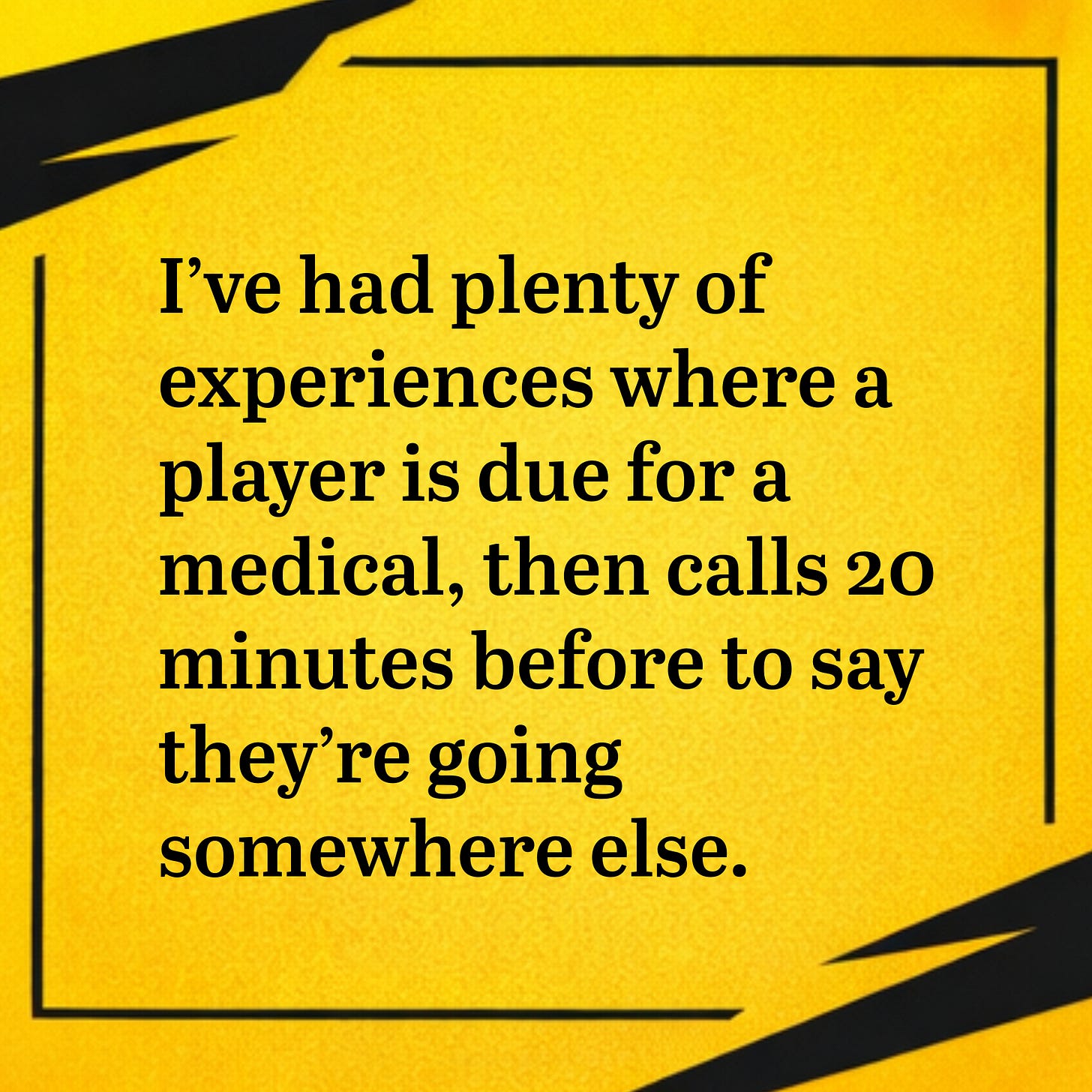 I have had plenty of experiences of thinking a player is arriving for a medical, ringing me 20 minutes before and telling me they’re diverting and going somewhere else. That has happened to me three times. And therefore you want as few people as possible to know until it’s done, because it’s so hard signing players, and it takes miles longer than it should, and miles longer than you wish it would. That’s just the nature of the beast.