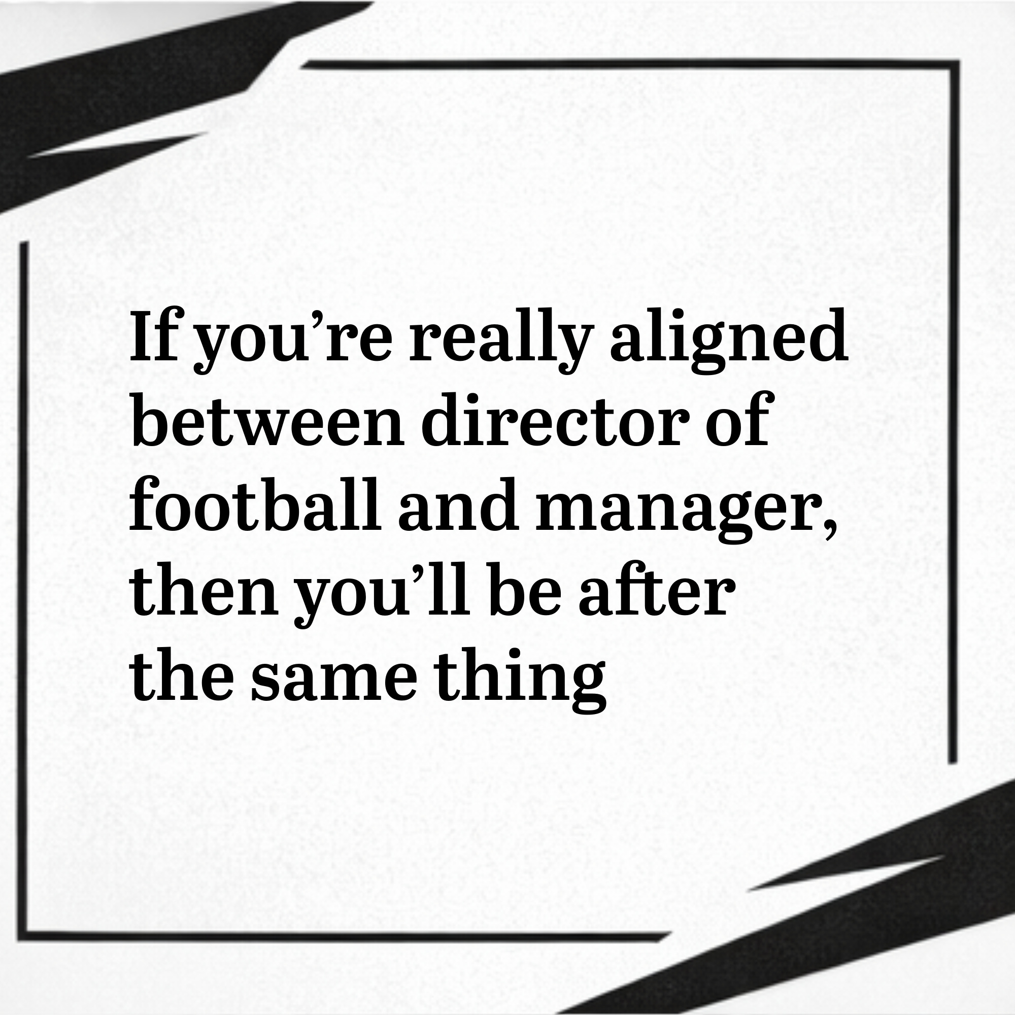 In the end, if you’re really aligned between Director of Football and manager, then you’ll be after the same thing and you’ll want the same thing out the window. And we’ve got a really open dialogue at our place, so we know what’s happening and we’re all on track.
