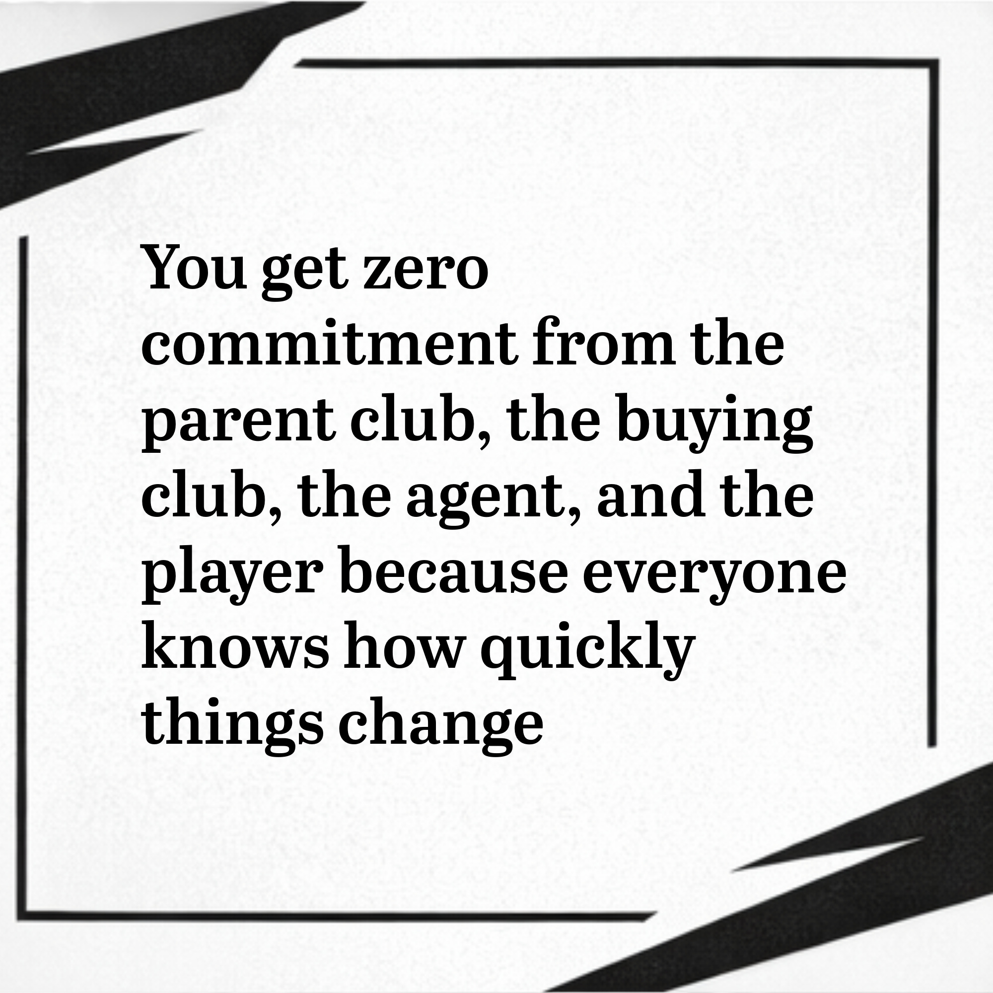 But you probably get zero commitment from the parent club, zero commitment from the buying club, zero commitment from the agent, zero commitment from the player, because everyone knows how quickly things change.