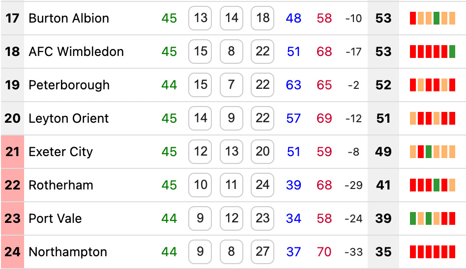 📉 Cobblers collapse — Northampton Town have suffered 27 defeats, equalling their worst-ever EFL season tally.