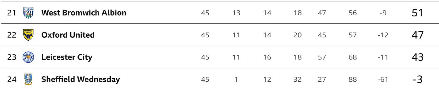 🏟️ Blades blip — Sheffield United have lost 10 home games – only the second time they’ve hit double figures outside the top flight. In total this season, they’ve lost two more games than Oxford and four more games than Leicester, who’ve both been relegated.