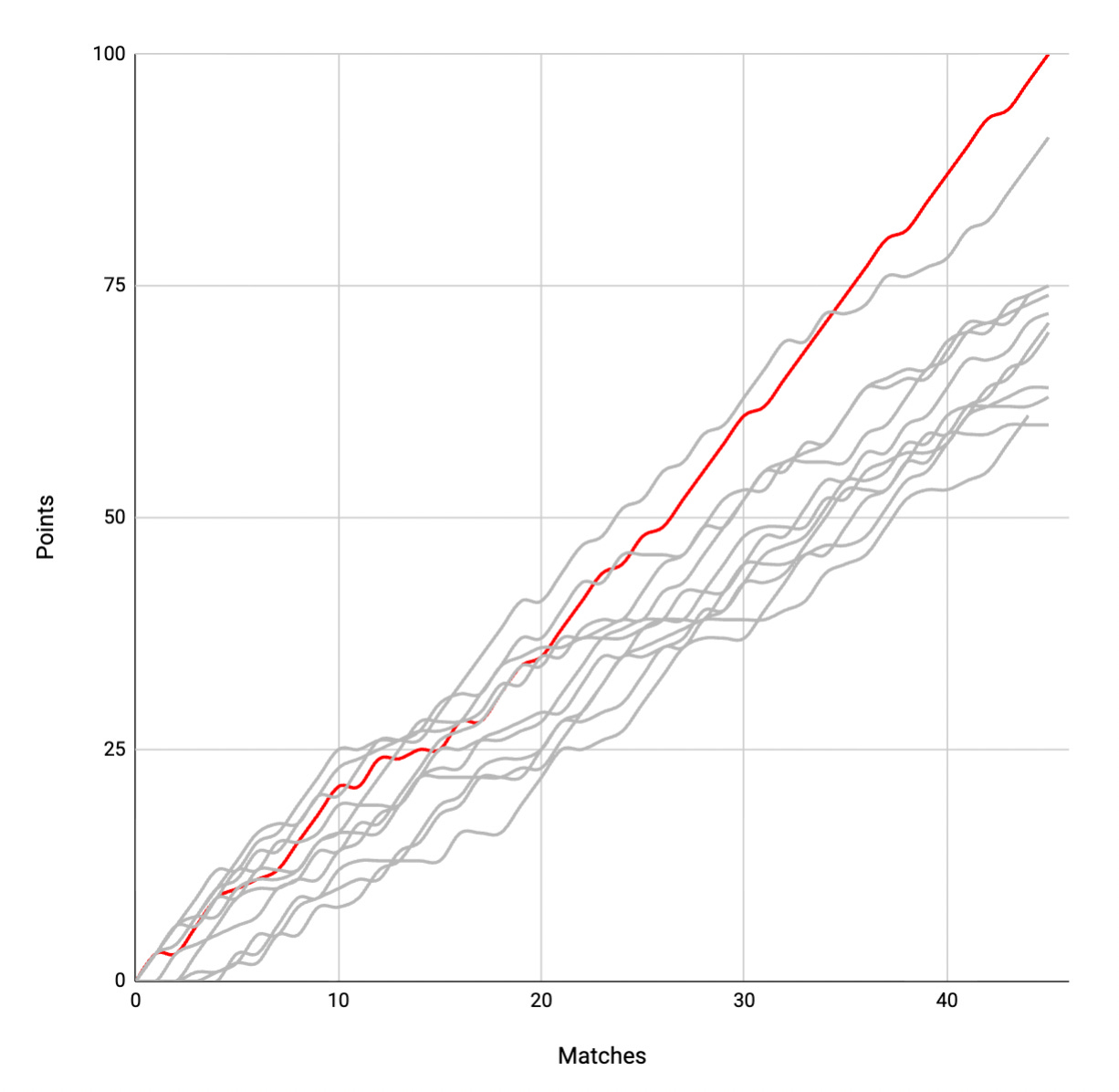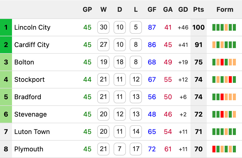 Let’s not undersell Lincoln’s relentlessness. They haven’t just kept their foot on the gas; they’ve pushed the accelerator pedal through the floor, forcing everyone else – even Cardiff – to eat their dust. Observe their position approaching this season’s halfway point, and compare it to their lead over the rest of the top half today.
