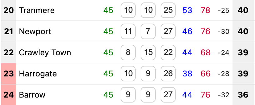 Elsewhere, Crawley came from behind three times in their 3-3 draw with Accrington and Harrogate made it back-to-back victories by winning 2-0 at Walsall. It. Is. Tight.