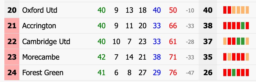 For Argyle, their form is more than a bit troubling. Three wins in five - against Morecambe, Accrington and Oxford, three of the leagueâs worst teams - masks a drop in performance levels. When they played the leagueâs better teams (most recently Peterborough and Barnsley), Plymouth lost both and conceded eight.