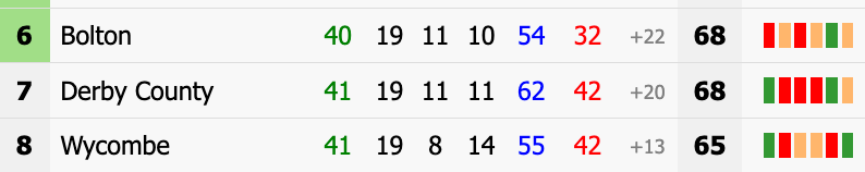 At the same time, Wycombe and Derby are training what explosive material they have left on felling the current occupiers of sixth spot: Bolton.