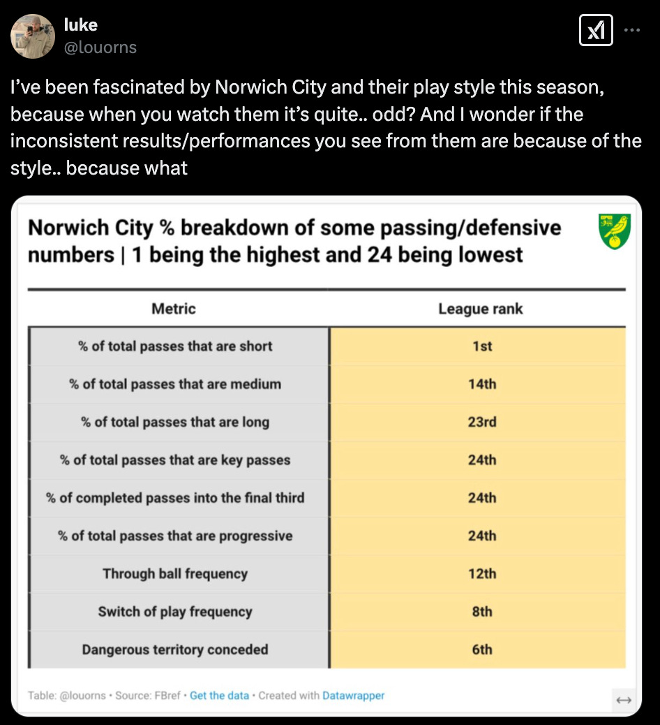 That could perhaps have started as a reaction to losing star talents – Gabriel Sara to a summer sale, Josh Sargent to injury, Borja Sainz to a long suspension – but it has placed more pressure now on Sainz refinding his early-season magic and Sargent being more efficient with fewer opportunities. In their last three matches, oldest first, Norwich have had: