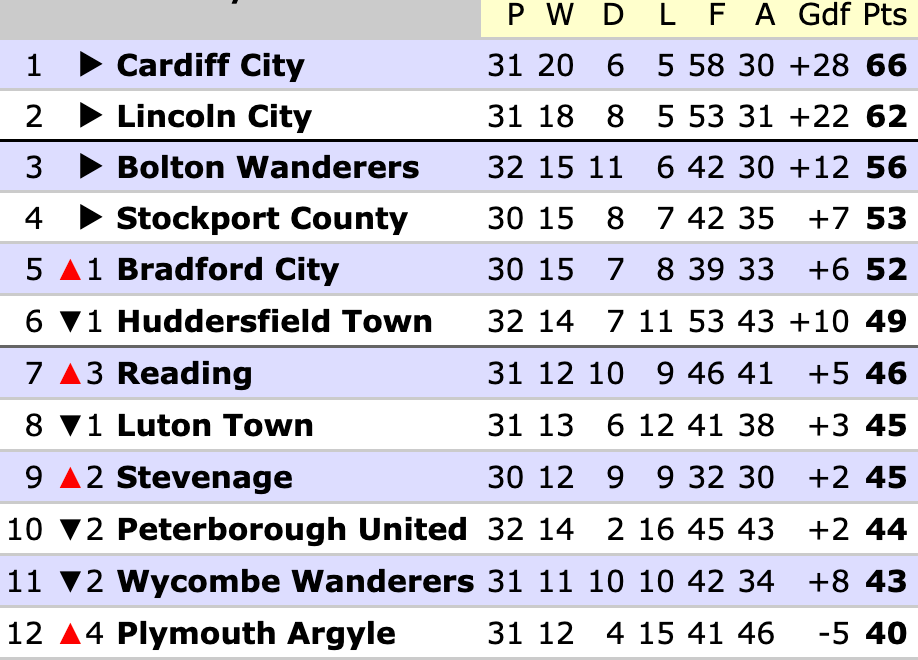 That 1-1 draw allowed Cardiff to increase their lead over 3rd to 10 points. They were scintillating in a 3-1 win over Luton, whose only shot after Jordan Clark’s 20th-minute penalty was an effort from their own half. Perry Ng scored a belter, Alex Robertson controlled the midfield, Joel Colwill impressed again and brother Rubin replaced him for his first appearance since November – everything’s coming up Bluebirds.