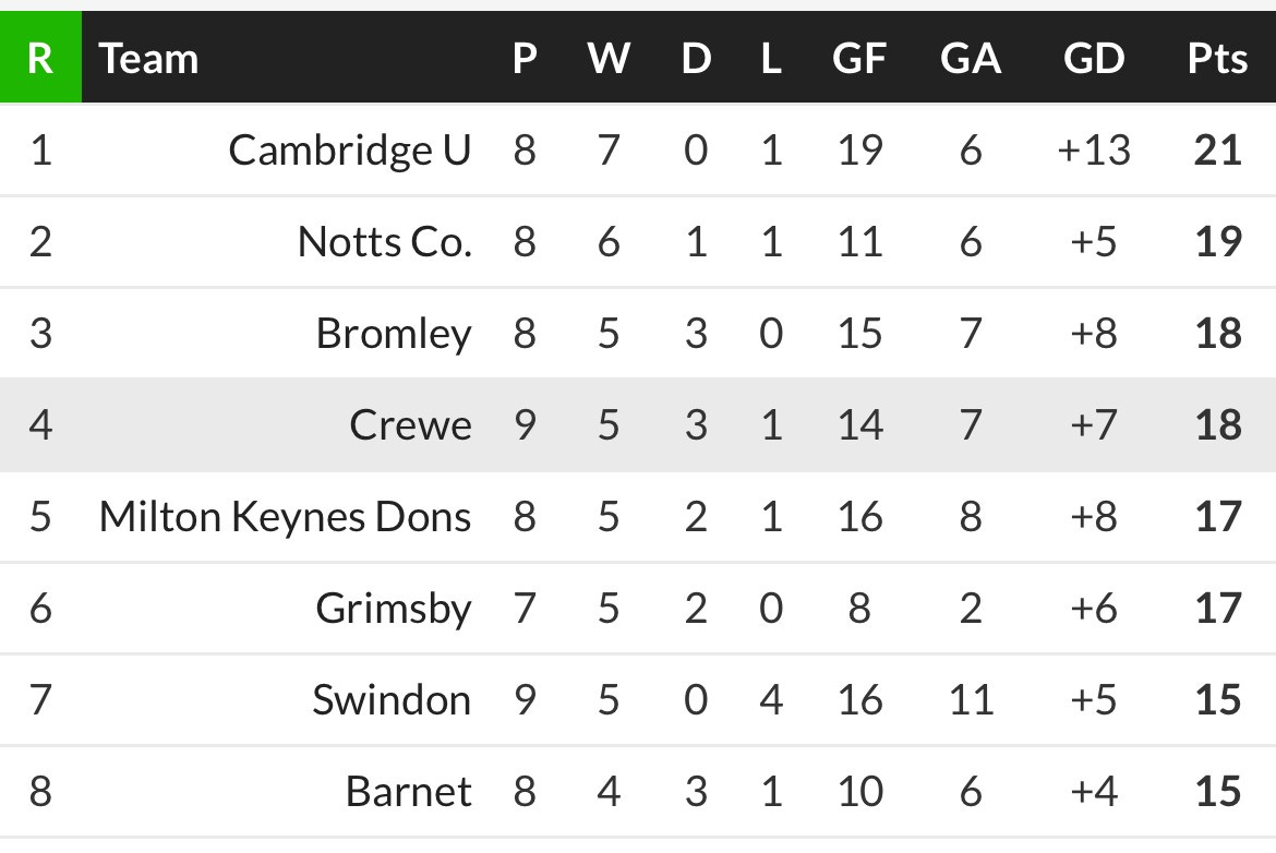 At the top, Bromley drew 1-1 with Notts County. Then 3rd-placed Swindon were well beaten 3-1 by a Shrewsbury side who have now won back-to-back games and have grown a 7-point gap to the relegation zone. Those results meant the big winners at the top of League Two were Cambridge and MK Dons.
