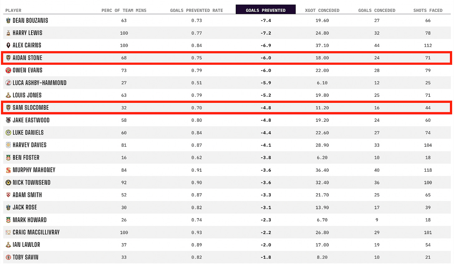 You’ll notice Luca Ashby-Hammond’s name in between - his shot-stopping stats were also poor in a loan spell at Crawley. It’s worth remembering that GK stats and performance can be volatile in small sample sizes and shouldn’t be taken as a gospel measure of quality.