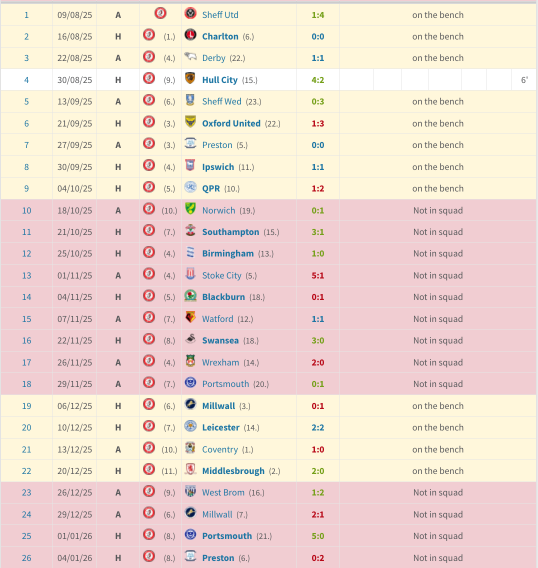 The 25-year-old winger doesn’t fit into Gerhard Struber’s wingerless system, just as he didn’t fit into Liam Manning’s: although he has featured in 24 of the Robins’ 27 league matches under Struber, he started only three, including the first two. Since Boxing Day, Yu’s minutes on the pitch in Championship fixtures reads 1, 5, 0, 5, 1, 14, 2, 34, 1, 27. He needs starts.