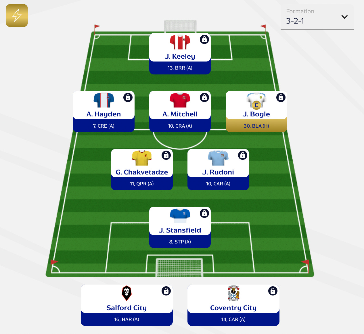 At this stage, all of our players have between 7 and 15 points — not disastrous, not magnificent. Our club picks of Salford and Coventry look decent, with winnable away games to come.