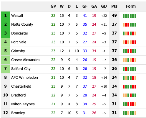 👔 League Two sexy for your shirt — Barring an ominously good Walsall side who are undefeated in 13 games, the fourth tier of English football is poised tighter than a fitted shirt. Six points separate 2nd from 12th. It’s not a Seeded Batch but a glistening croquembouche.