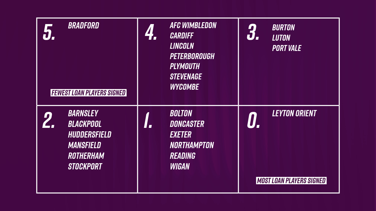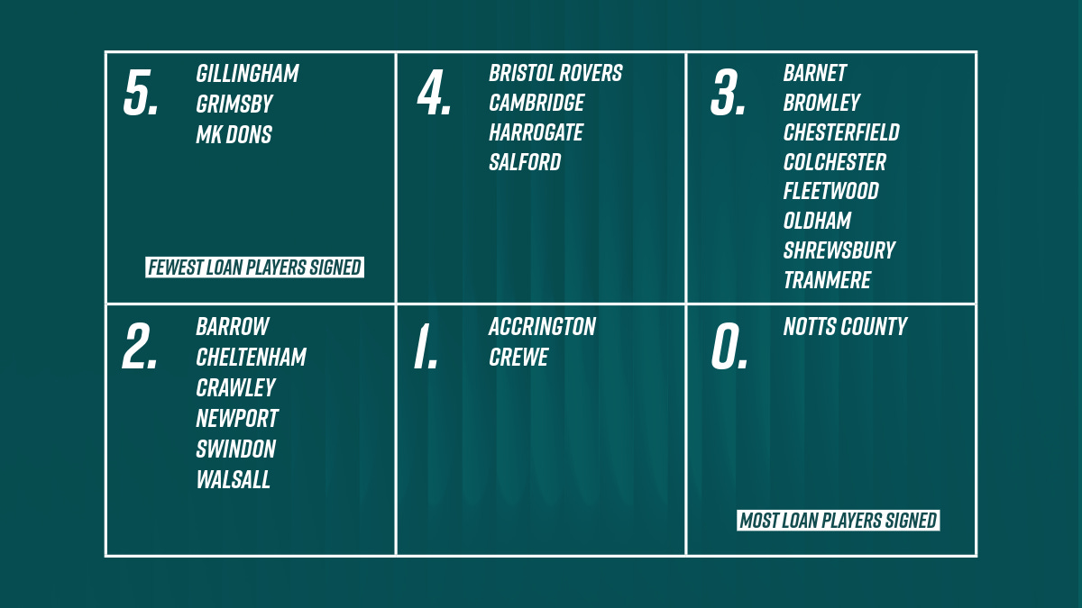 And finally, in League Two, it’s much more balanced, with the vast majority of teams utilising the loan market, while retaining the option for flexibility as they head into the final week of the window.