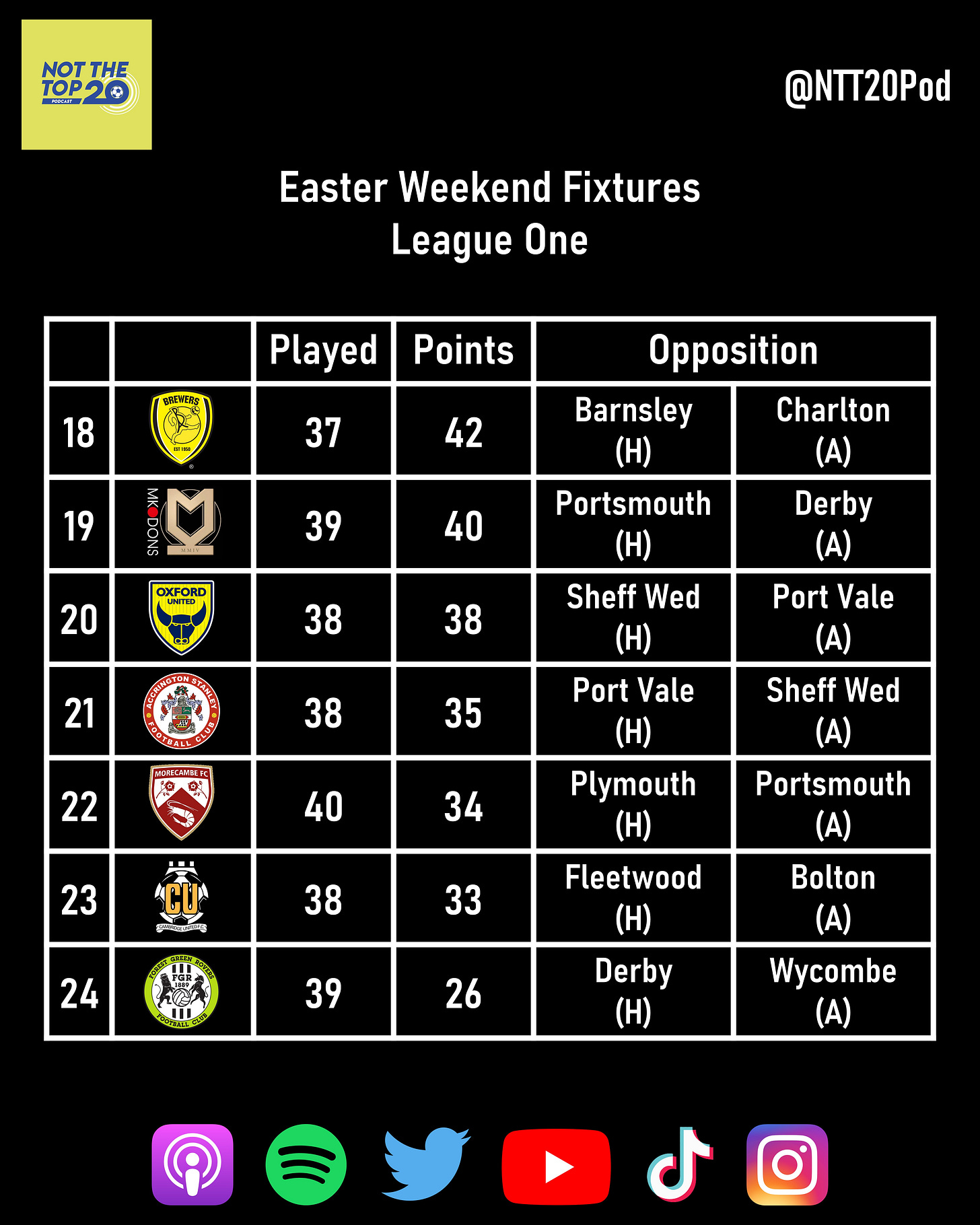 For Northampton, they can make a huge stride towards League One this weekend, playing 18th and then 19th. The problem is that Newport and Gillingham have only lost five of their last 20 games combined - they are no pushovers.