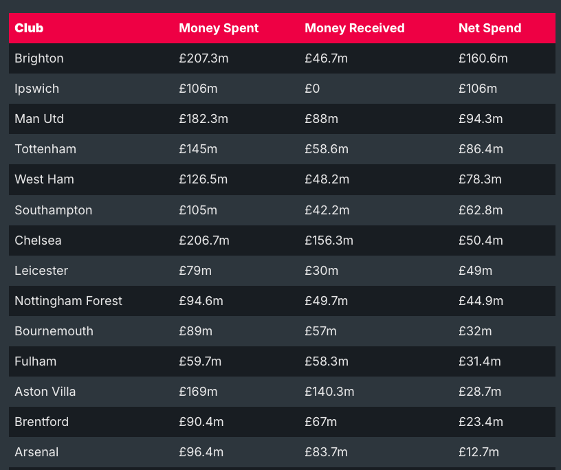 This season, the newly promoted sides – Ipswich, Southampton and Leicester – have collectively spent £278,000,000 on incoming transfers. After the opening four matches, none have registered a win, all have conceded seven or more goals, their aggregate scoreline is 8-22 and #IPSSOT this weekend is already a must-not-lose for both teams. This trio’s great hope? That there are three teams poorer than us. And not just qualitatively poorer on the playing field, but poorer through financial hamstringing, FFP, PSR and points deductions.