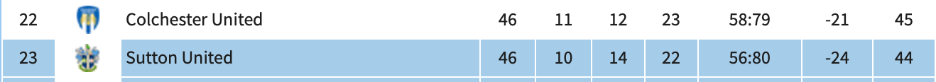 Sutton face MK Dons on Saturday. Not easy. But with play-offs in the bag, MK may well rest up some weary legs ahead of their semi-final double-header in May. Still, you’d imagine the task to be rather too steep for a Sutton side who’ve only won 9 times in 45 games. But if it isn’t, and Sutton win, what needs to happen to secure their survival?
