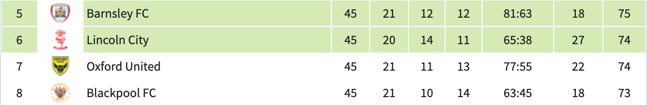 “How are we in this?” Barnsley must be wondering, for very different reasons. In the first week of March, they were 10 points clear of 7th and three behind 2nd with a game in hand. They’d lost only twice in 25 matches. Then they crashed 5-1 at home to Lincoln – 15 points behind them at the time – and the wheels fell off. Not helped by a rearranged fixture list presenting them with five away games in the space of three weeks, Barnsley went on a losing streak, and now, barely six weeks after that spiral-inducing loss to Lincoln, the Tykes lead them by a single point and could easily tumble out of the play-off places at the worst possible time.
