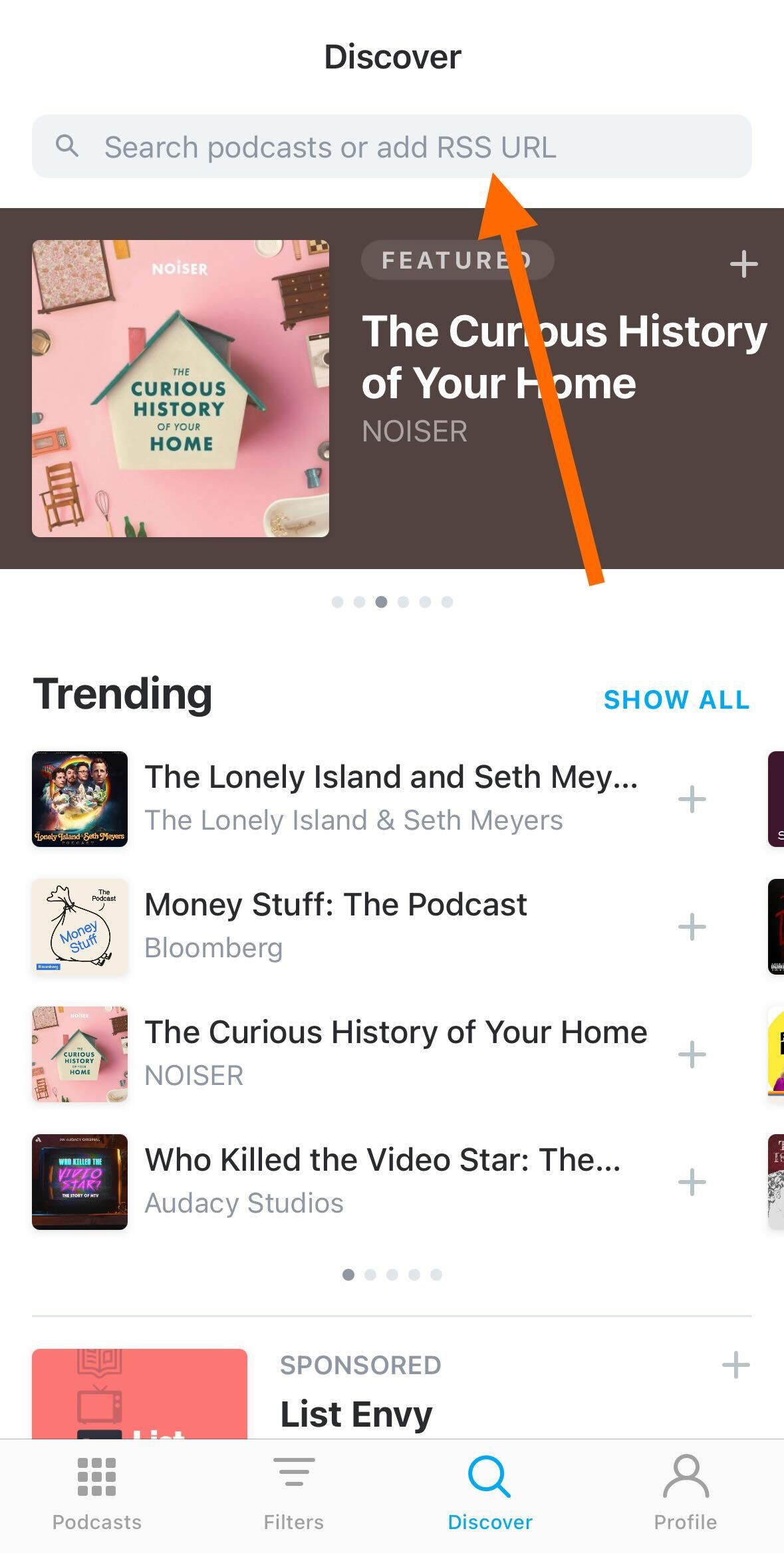 Tip: Typically, you can enter the URL into the podcast app show search bar or in an "Add URL" section.
