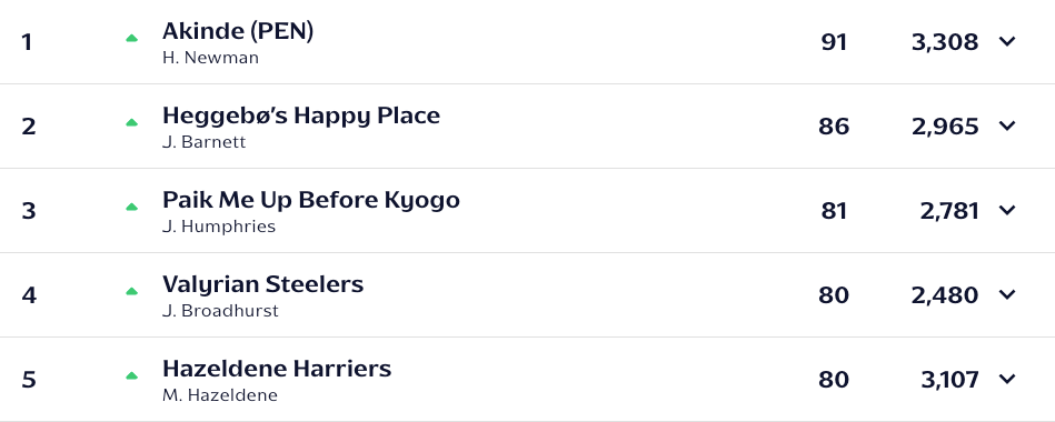 2 Ipswich 40 +31 75 🟢 🟢 🟡 🟢 🟡 🟡