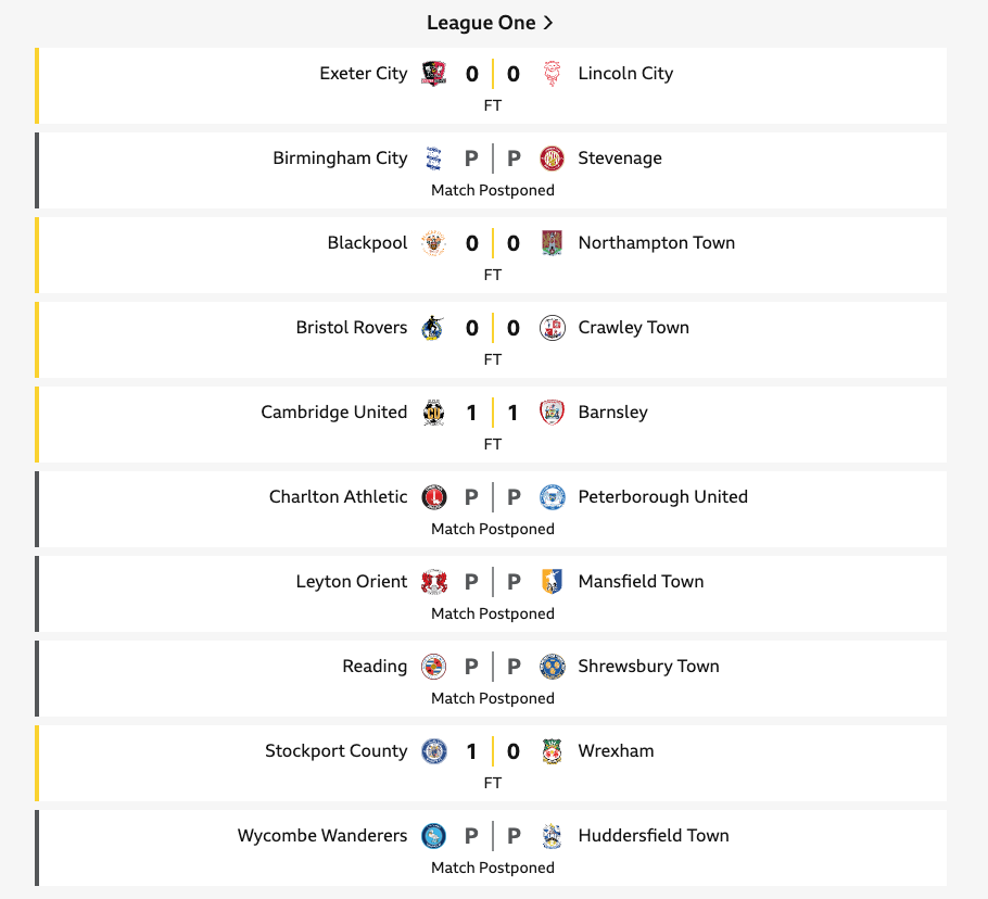 👃 Classic Pong — Stinking out my intro, League One ‘treated’ us to the to-and-fro of basic binary. 0-0s. 1-1s. And P-Ps. Matches that happened. Draws with an average of 6.25 shots on target per game. Blackpool began Saturday with an injury crisis that then worsened, as their two fit strikers both came off injured. Barnsley’s Stephen Humphrys scored another banger (per the last Monday pod: who’s making that goal-quality data set?). Exeter kept another clean sheet. But for every pong, there is a ping…