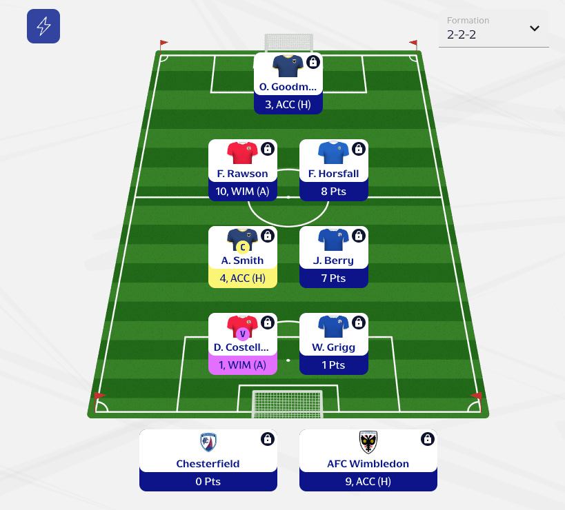 George elected for a League Two-rich team in this week’s fantasy football, including a couple of double-gameweek selections. We’ve racked up 43 points thus far with a few more to come.