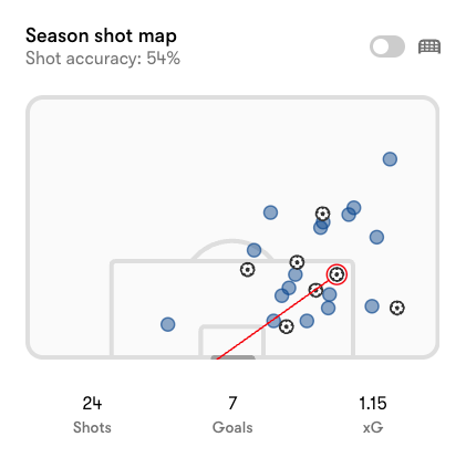 Had a pop at making the quality of goals leaderboard that the lads have mentioned in the last couple of pods and (the way I've done it anyway) James Berry is blowing everyone else out of the water with his shots from that left hand side