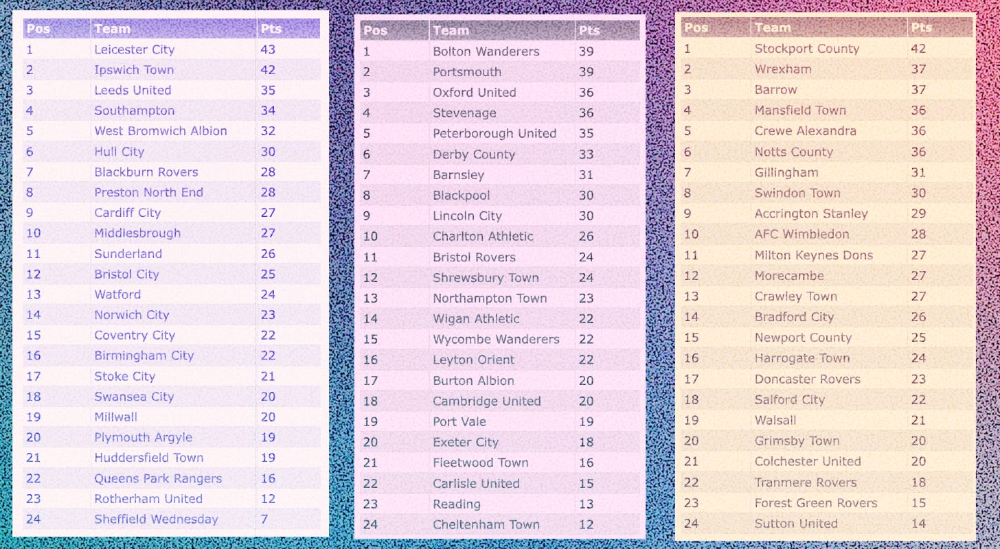 While Sheffield Wednesday did end 2023 in 23rd (now 22nd, following their New Year’s Day win over high-flying Hull), Danny Röhl had the Championship’s third-best record across December, with arguably the Championship’s third-worst squad. That part isn’t quantifiable, but what is quantifiable is 12 points from seven games in the month, a tally bettered only by a pair of heavyweights in Leicester and Southampton, and it coulda woulda shoulda been more than 12 except two deflected goals turned a 1-0 lead over Cardiff into a harsh 2-1 defeat. Beating Blackburn, Stoke, QPR and Preston took Wednesday from one win all season to five.