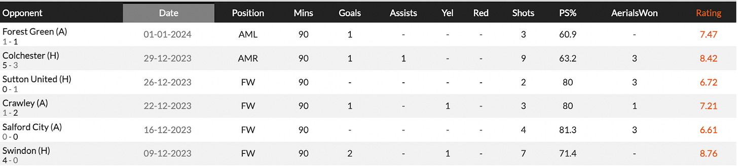 But Tomlinson isn’t just about goal threat. He also has the composure and IQ to pick out teammates with crosses or cutbacks, even after carrying the ball long distances. He grabbed a brace of assists against Forest Green, and created the most xG from open play of any League Two player in December.