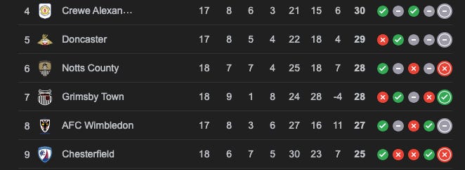 Now, after their first home win since September, the question becomes: what next? The xG data shows a side overperforming in terms of goals for and against. But as team after team has proven, you can make a push towards the top 7 without the data on your side. That’s what Artell has achieved to compelling effect. When you have a manager who’s done it before, maybe Grimsby really can keep up their expectation-defying assault.