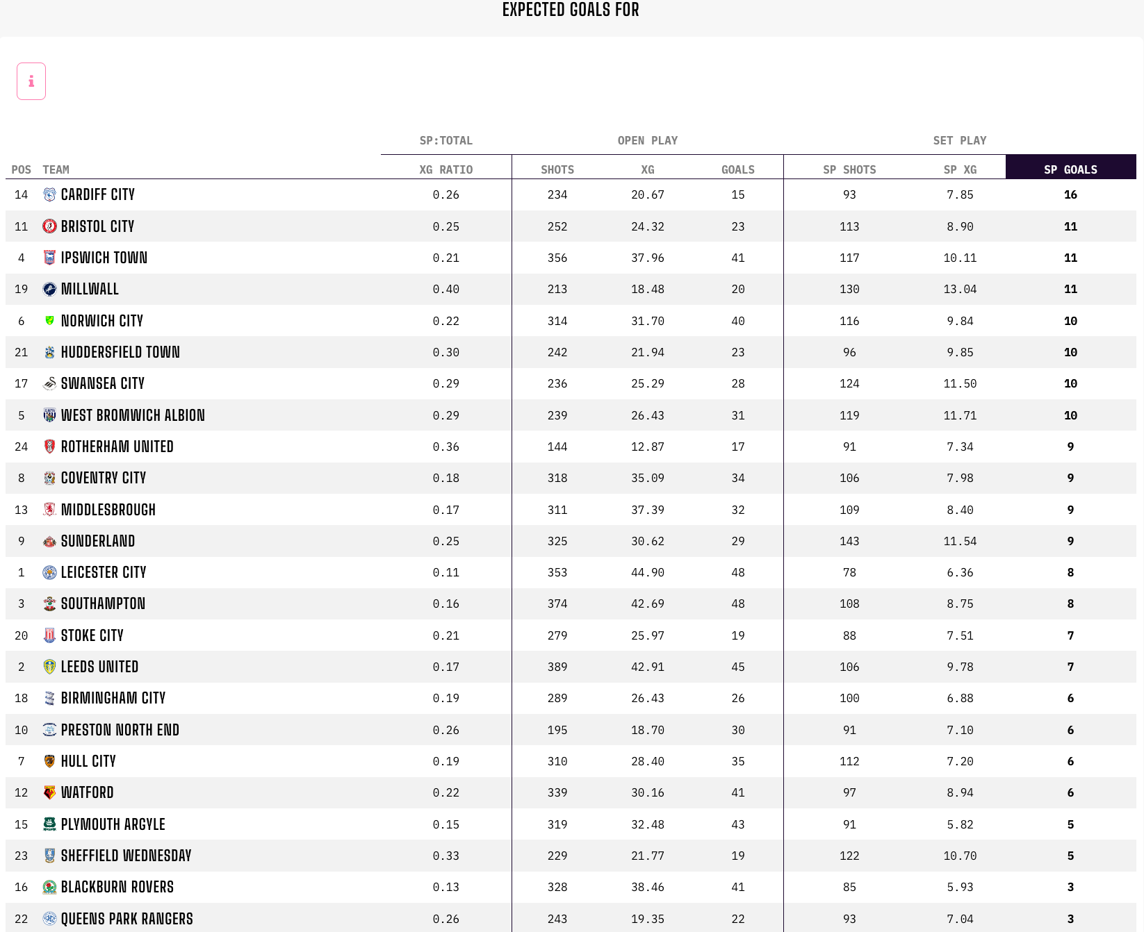 And to make matters worse, their dead-ball threat doesn’t look sustainable. The problem isn’t just that set-piece goals account for 44% of the Bluebirds’ season tally (50% if you include penalties); it’s that they’ve come from an xG worth less than half that.