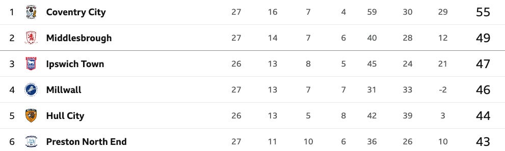 And finally, Southampton’s struggles under Tonda Eckert continued as they trailed Hull 2–0 at half-time. Ross Stewart pulled one back after the break, but the Tigers threw bodies in front of everything to hold firm. It is now one win in eight for Saints, while Hull sit in the play-off mix with a game in hand on many around them.