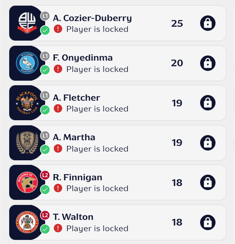 And then we come to Bolton, the big winners of the weekend. Schuey’s Trotters beat Port Vale 4-0 to climb from 7th to 3rd. There were four more goal involvements for Amario Cozier-Duberry (2G + 2A), who is proving far too good for League One defences. The Brighton loanee leads the way in the third tier for direct goal involvements. In fact, only Brandon Thomas-Asante has more goals + assists than Cozier-Duberry in the EFL this season — they really are giving it both barrels.
