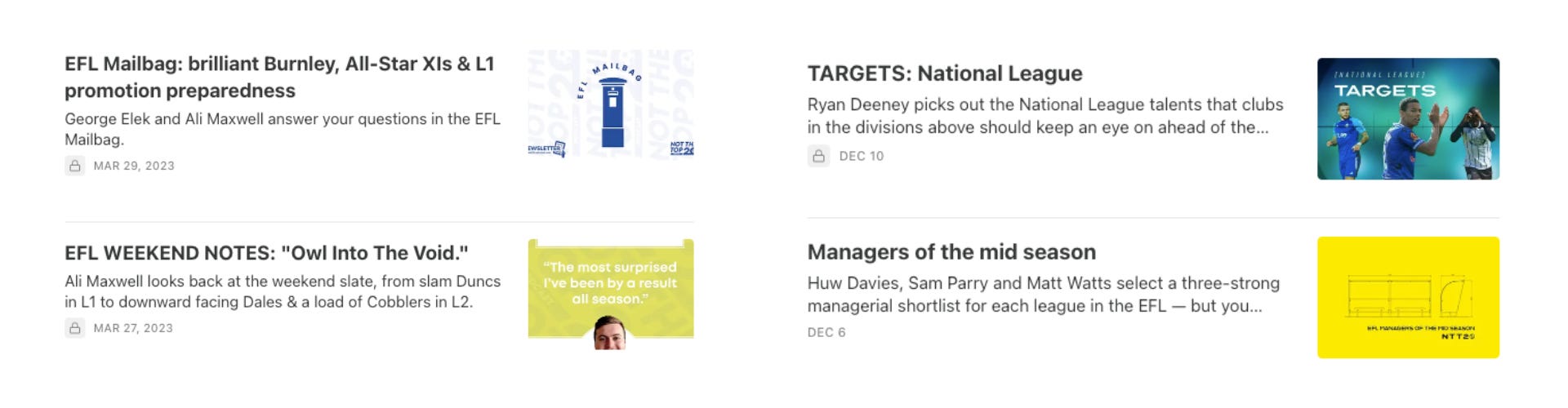 We started this site to add a textual layer to the Not The Top 20 onion. A layer that brings you the best, most passionate, most insightful coverage of the Championship, League One and League Two. However you slice, dice or chop it, we’ll keep you up to date on everything EFL until the earth explodes.