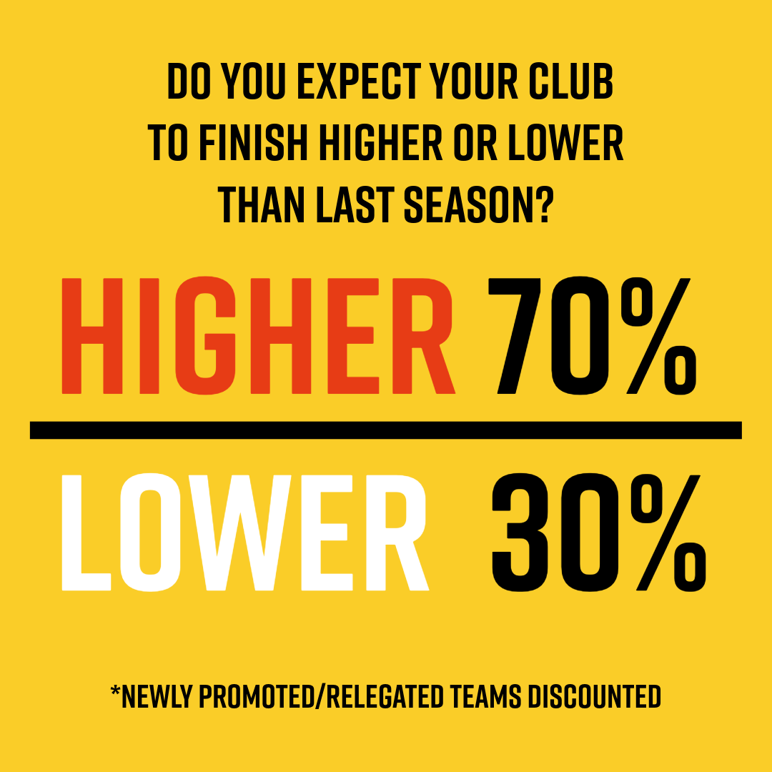 We asked fans whether they expect their team to finish higher or lower in the table compared to 2024/25. We break it down club-by-club below.