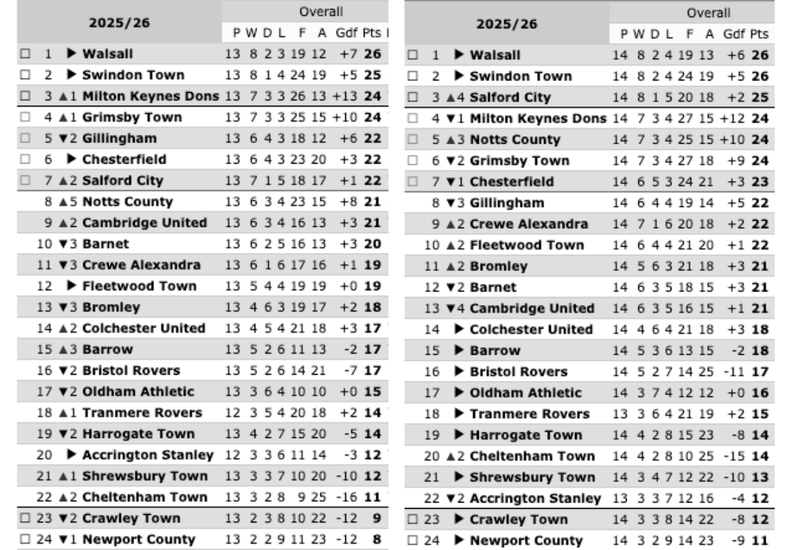 Finally – although not one of the six – a word for Notts County, who beat Cambridge 2-0. On 17th August they had one point from three games and their star striker was suspended. Since then, no team has scored more, won more, nor collected more points. They’re two off top spot and rising fast, and what’s that — a brace from Alassana Jatta? Scary stuff, heading into the thick-and-fast of winter.