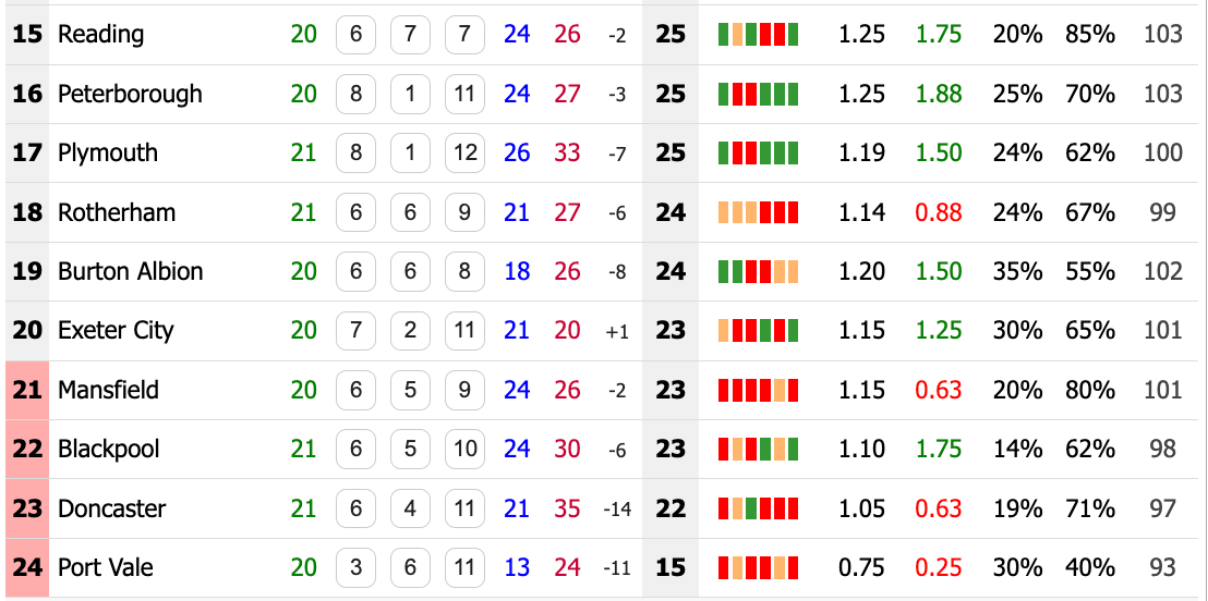 It was an eventful weekend at the bottom of League One and the big winners were the two Devon clubs. Plymouth Argyle jumped from 21st to 17th with a 5-1 victory away at Doncaster Rovers. The returning Lorent Tolaj scored his first career hat-trick, making him the division’s top scorer in spite of a three-match ban, and Owen Oseni registered a goal and two assists. While Argyle have won three in a row, Donny have slipped from second to second from bottom, following a run of one win in 14.