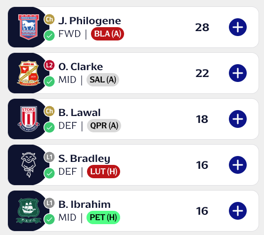 Elsewhere, Wigan were impressive and clinical in a 3-0 away win over Doncaster Rovers, where once again Fraser Murray was doing the business. Then in Stockport 1-1 Cardiff, Yousef Salech’s 97th-minute equaliser ruined Dave Challinor’s evening. The Hatters were dominant for long stretches, rediscovering shape and discipline hitherto missing this season, but no cigar. A point apiece – so a cigarillo, maybe, and encouraging signs for Stockport. Cardiff still haven’t conceded a non-penalty goal, though who knows for how much longer – they’re the red team here.