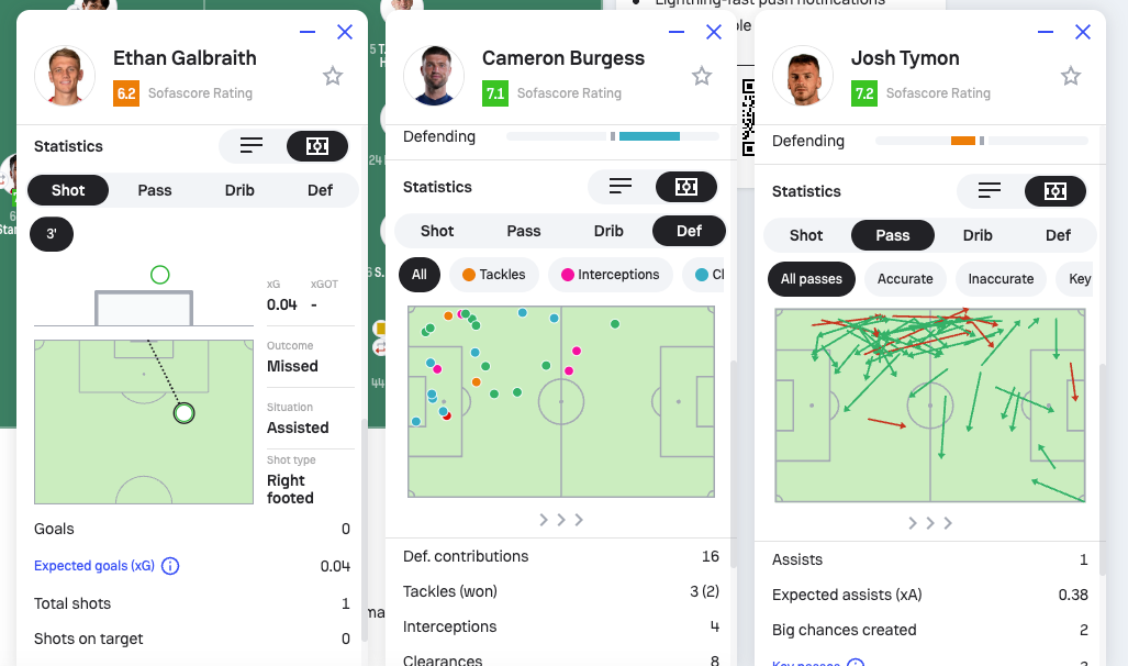 Sofascore also allows for side-by-side comparisons of different player stats from specific matches, or the same player from different matches, which can be really handy. All the more handy now they have added maps for shooting, passing, dribbling and defending.