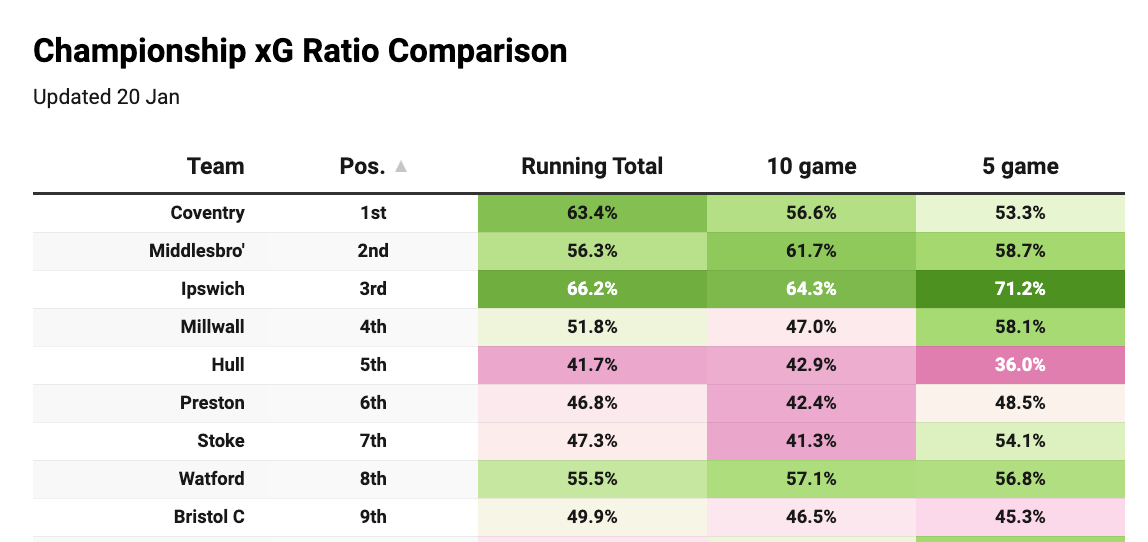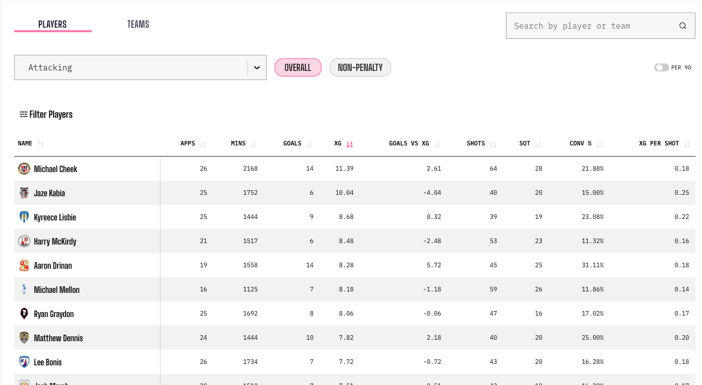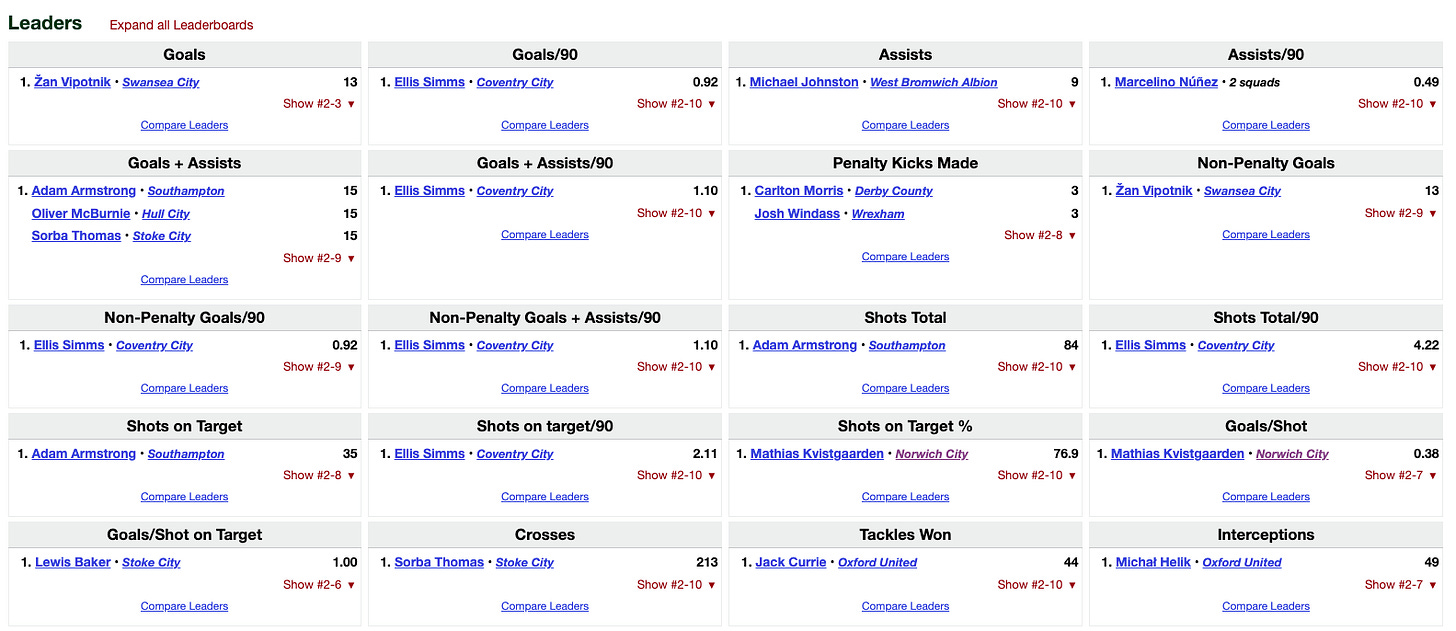 For a long time, Opta pretended that the EFL didn’t exist in terms of their publicly available data. Now they’ve gone the other way, and we’ve all benefited from it. Thanks, Opta.