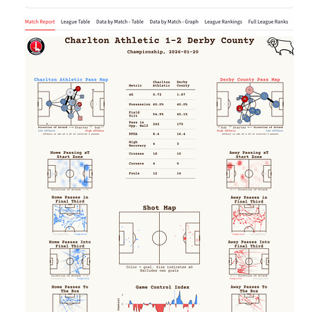 Ben has built an incredible resource for EFL fans, with advanced data (via Opta) available for every club in the 72. It’s a huge playground with so much to discover and explore, whether that’s team-specific stuff or overall league rankings. Jump in, nerd out.