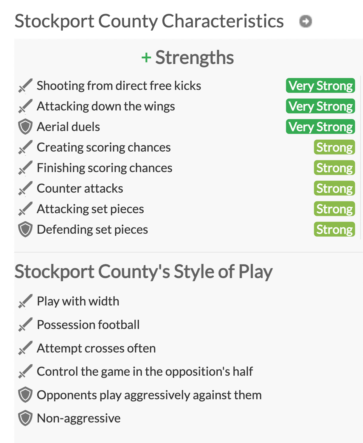 Equally, Stockport’s most regular angle of attack is down the sides, with wing-backs delivering crosses into the box. Hussey’s delivery is dependable, Knoyle’s is up and down. With two strikers and two attacking #8s crashing the box, too, Stockport can be a big threat from these situations if Salford don’t defend their box well