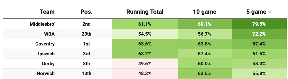 With just one defeat in five and two wins on the bounce, they are not just reverting to type but improving upon it. For the most part, this hasn’t come against forgiving opposition, either: Oxford (L), Sheffield United (D), Southampton (D), Hull (W), Bristol City (W).